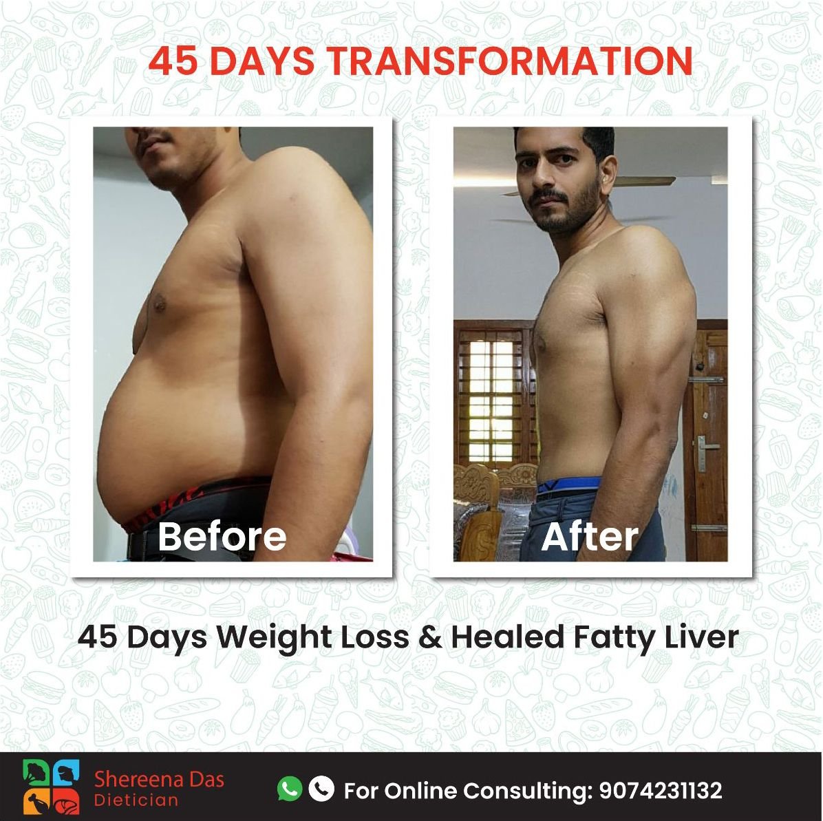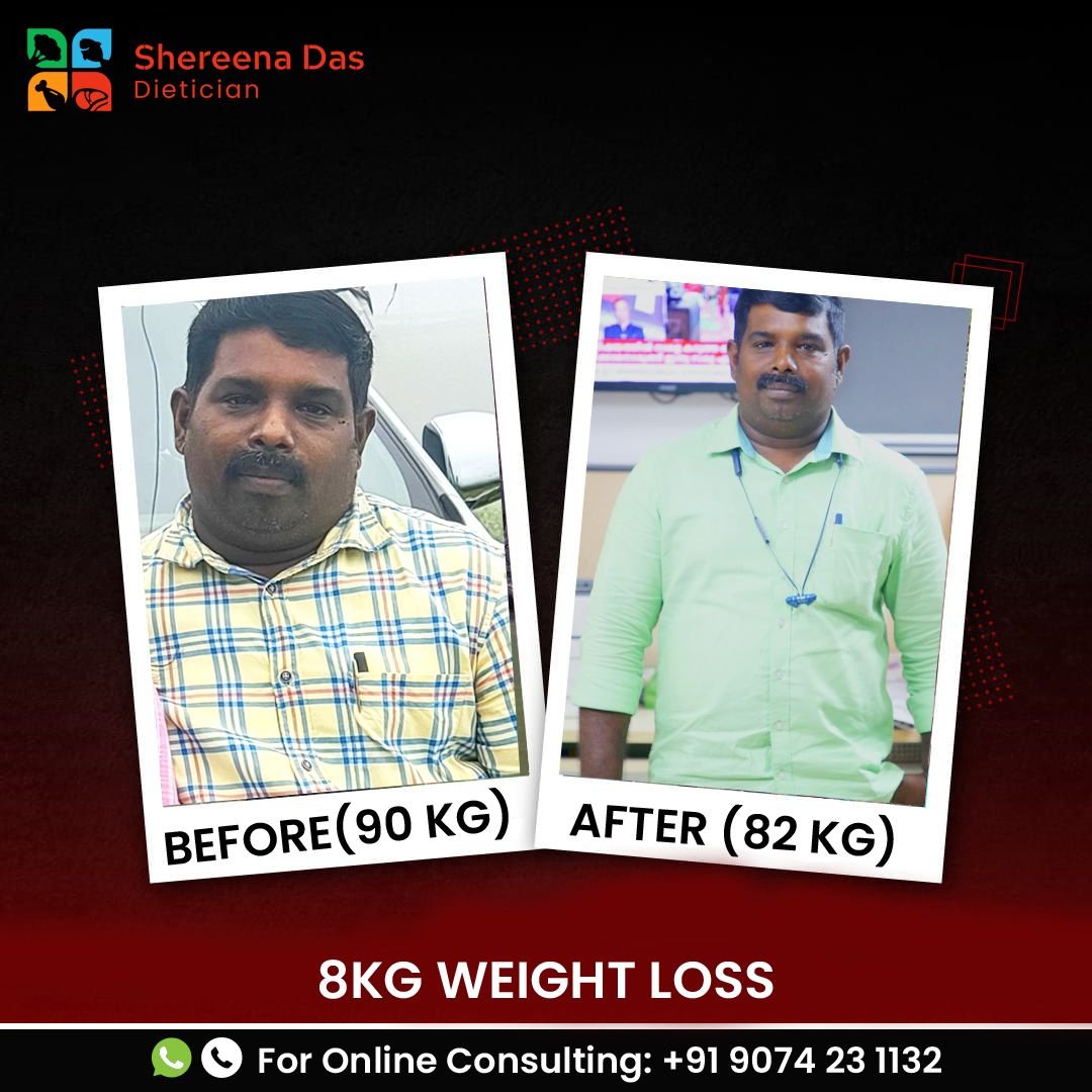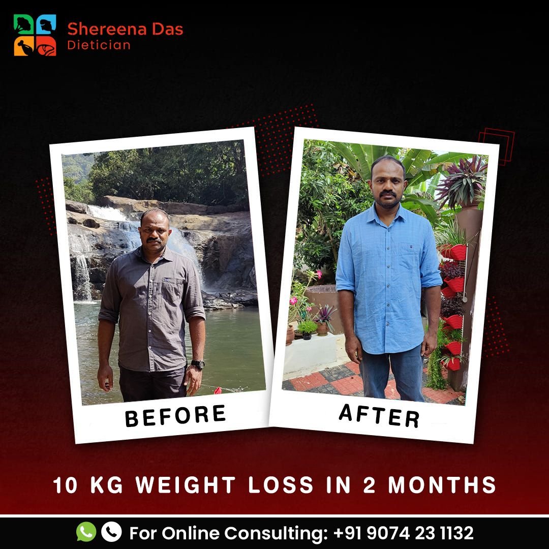 Me and husband could reduce 5 kg weight in a month by following the diet given by shereena ma' m. She was so supportive. The diet was not difficult to follow and we didn't feel tired any day. We are so happy with the result