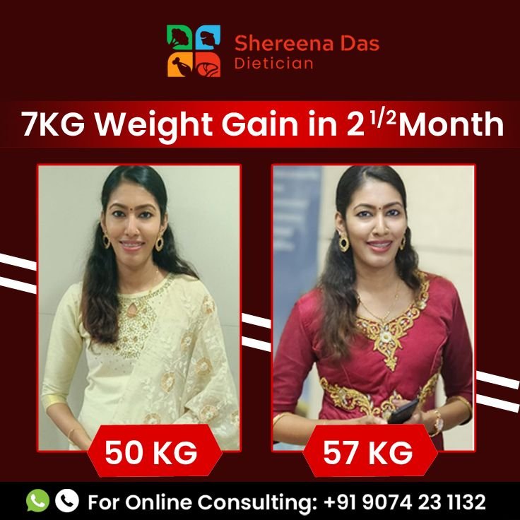 Thank you so much Shereena Mam for your support & guidance on throughout this weight gain journey. I have tried lots of other options for gaining wait, but all of them were for short term. But your guidance helped me & taught me how to gain weight in a healthy way. I gained 10kgs in 3.5 months. So I feel more confident now. Once again thank u so much🙏